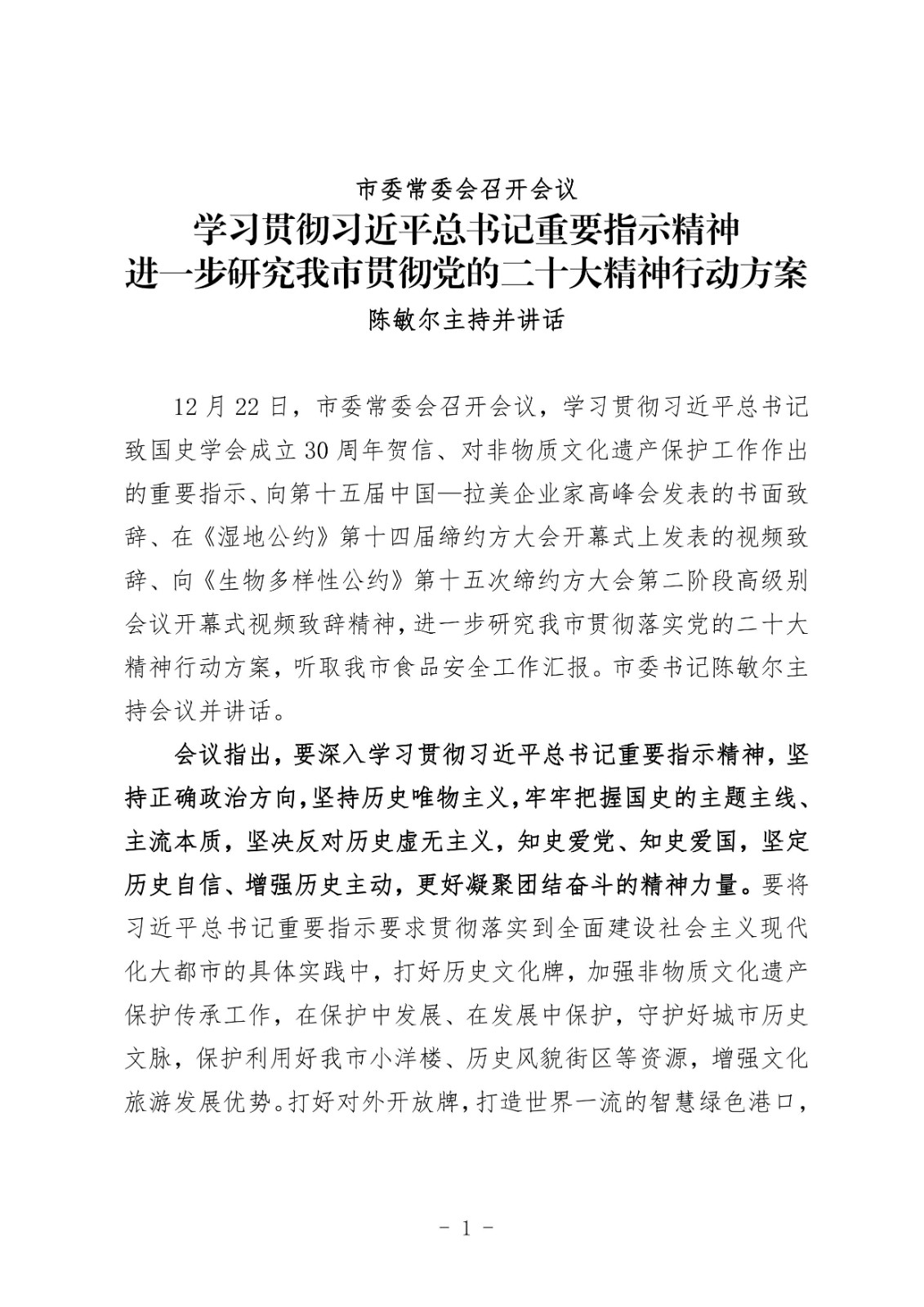 市委常委會(huì)召開會(huì)議學(xué)習(xí)貫徹習(xí)近平總書記重要指示精神進(jìn)一步研究我市貫徹黨的二十大精神行動(dòng)方案